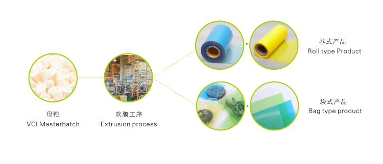 適用金屬包括鐵、鑄鐵、銅及銅合金、鋁及鋁合金、不銹鋼、鋁合金等金屬。適用于氣相防銹塑料薄膜類產(chǎn)品、氣相防銹熱收縮膜及氣相防銹珍珠棉的擠出吹塑加工,其他防銹塑料類制品的應(yīng)用需通過工藝確定。