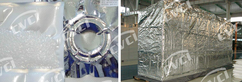 采用該產(chǎn)品包裝金屬制品后,可有效阻隔外界氧氣、水蒸氣、腐蝕性氣體、灰塵、陽光等進入包裝空間。在密封條件下可有效防止金屬銹蝕,并減緩橡膠、塑料等非金屬材料的老化變質,用于各種器材除氧、干燥、真空封存包裝,特別適用于電子、光學、儀表等精密器材的長期封存;也可用于大型設備、發(fā)動機、齒輪箱等大件器材的封套封存。